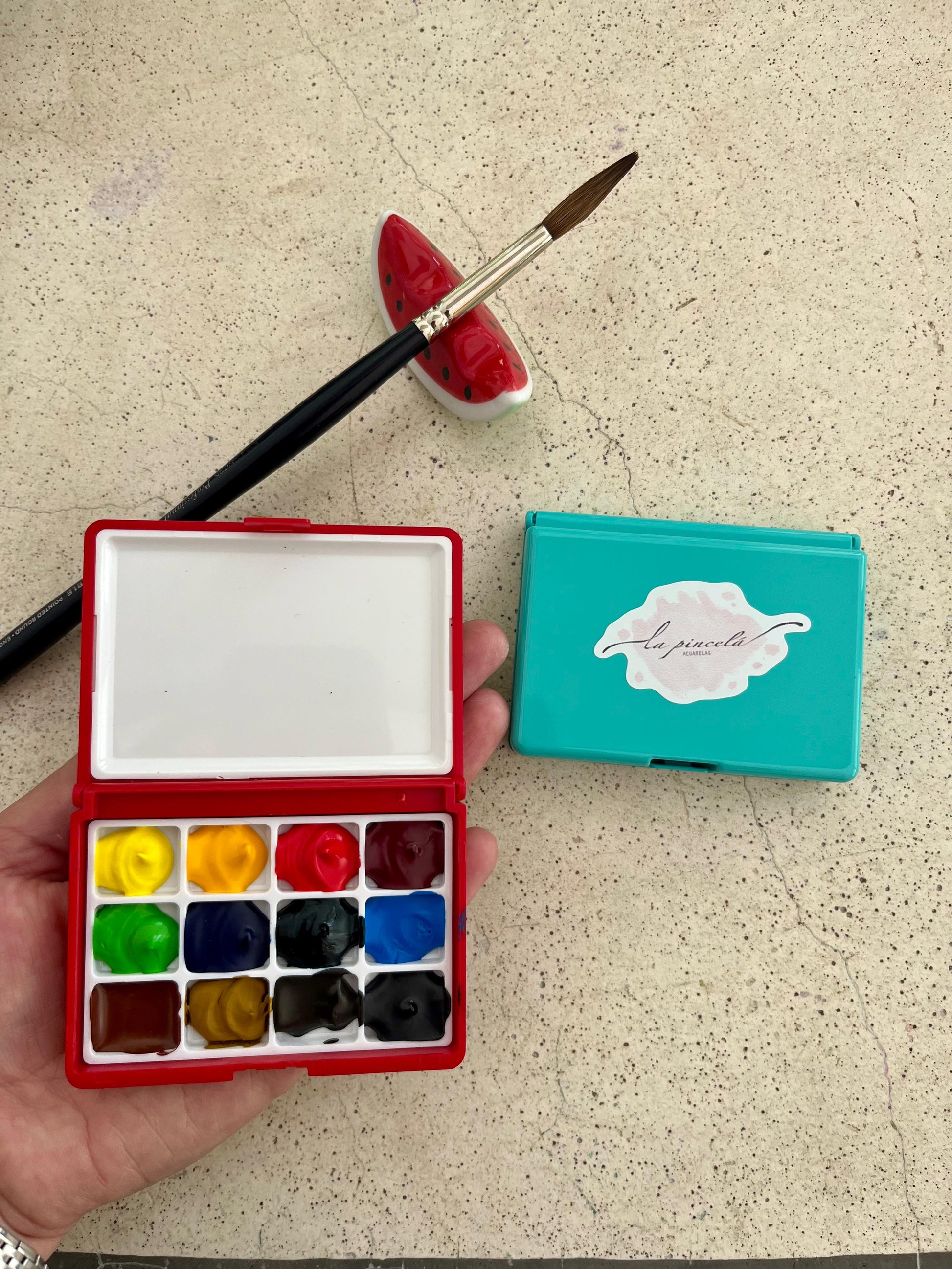 Mide solo 8 x 6 cm, por lo que cabe en cualquier estuche, cartera o mochila, convirtiéndola en la compañera ideal para pintar donde quieras: en el parque, en un viaje, en la playa o en tu escritorio.