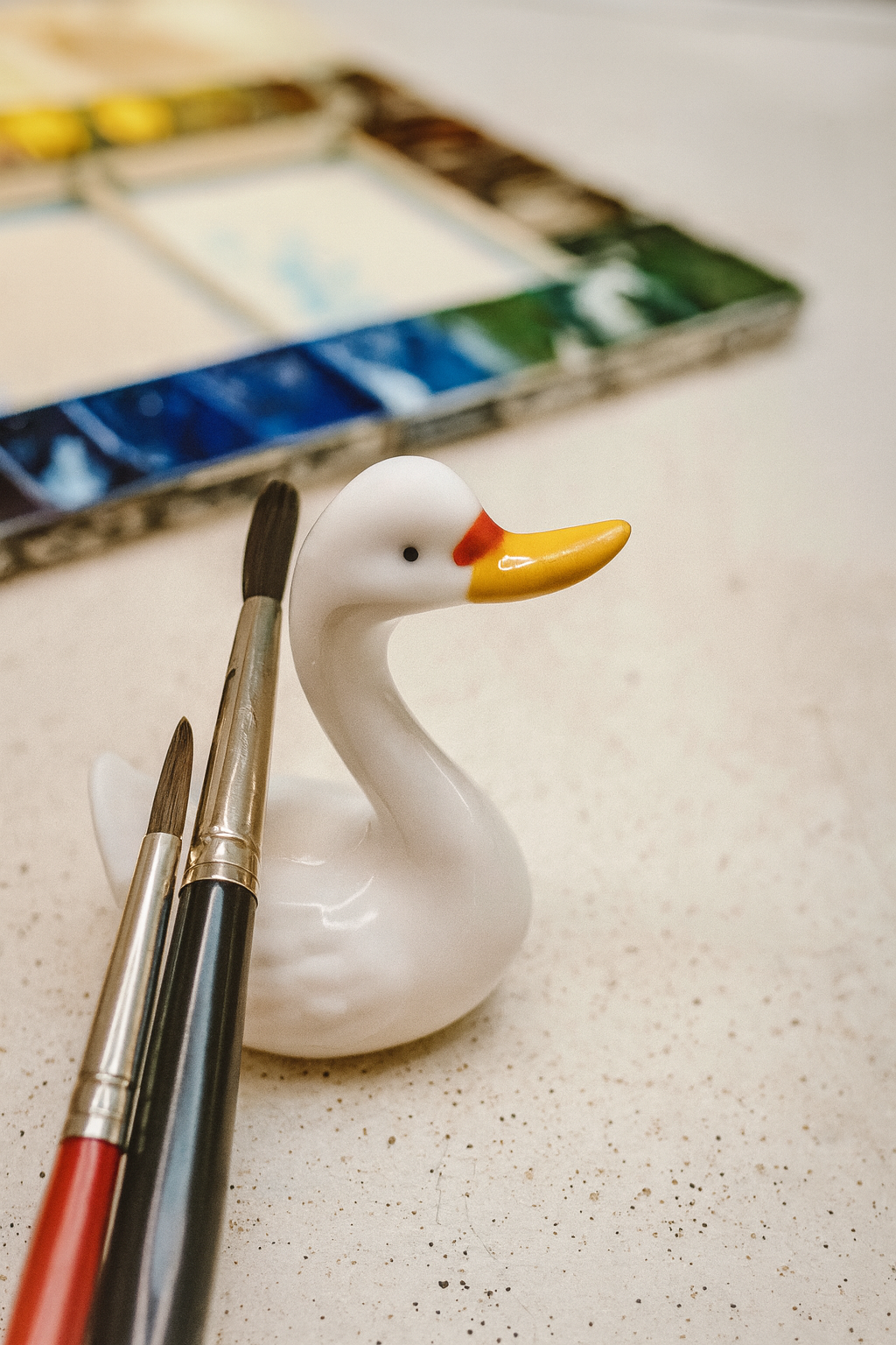 🦢 Reposapinceles Cisne Blanco – Soporte de Pincel de Cerámica